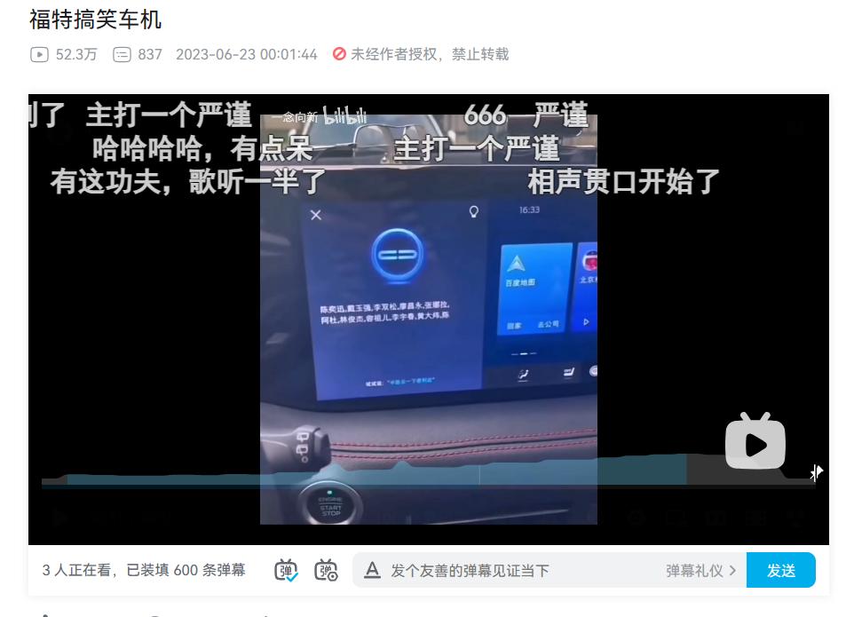 B站还有个关于福特车机系统的视频,拍的是这辆车放一首北京欢迎你,这辆车一口气播报了78位演唱者姓名,堪称华语乐坛大点兵。[8]