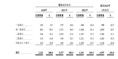 茶百道按城市等级增长趋势,图据招股书