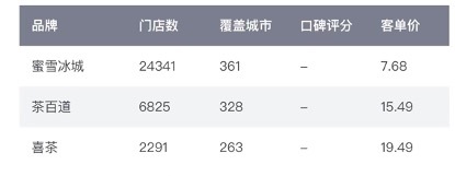 蜜雪、茶百道、喜茶门店客单价情况,图据窄门餐眼