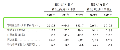 从茶百道招股书来看,尽管2022年净利润率进一步增长,但2022年整体增速较于2021年呈现放缓态势,店铺数同比2021年净增仅约1284家,年内零售额增速也降至约33%。