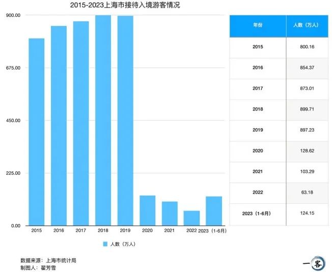 相关统计局数据显示,2023年1-6月,北京市入境游客仅为40.79万人,不到2019年全年的11%。同期,上海市入境游客数量为124.15万人,仅占2019年全年的13.8%。