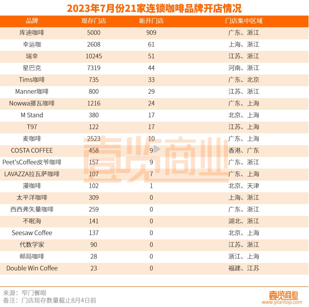 在头部已现的连锁咖啡市场,头部以下的品牌竞争十分激烈。据壹览商业不完全统计7月以来21家连锁咖啡品牌门店数量已达32729家,其中6个品牌门店数量都在千级以上。