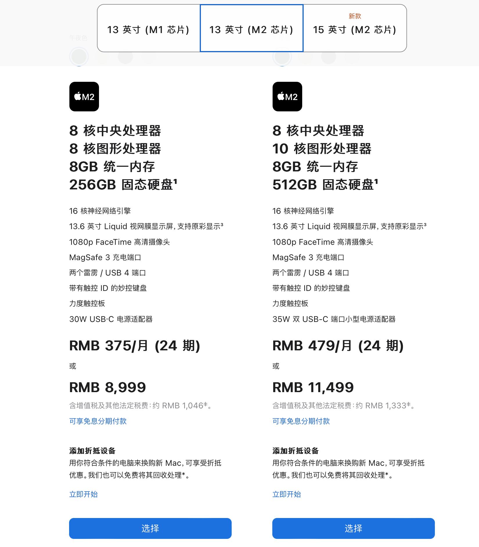 尤其是在价格方面,目前苹果官网在售的MacBook Air(M2版)起售价为8999元,这在Windows阵营中已经能买到一台配置中上水准的游戏本了,何况8999元的MacBook还是一台只有8+256G的丐版产品,如果想买到16+512G版本,就得再加3000元,12000元的价格对于绝大多少消费者来说已经远超预算。