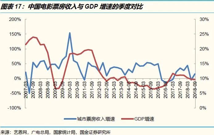 一种观点认为,人们在中国经济高速发展期积累下了一定的物质财富,因而拥有了更多精神文化需求,即各式消费。因此在经济增速放缓后,观众因客观因素降低了消费能力,但需求很难因此下降,所以作为低廉文化产品的电影才能够得到利好,获得巨大提振。