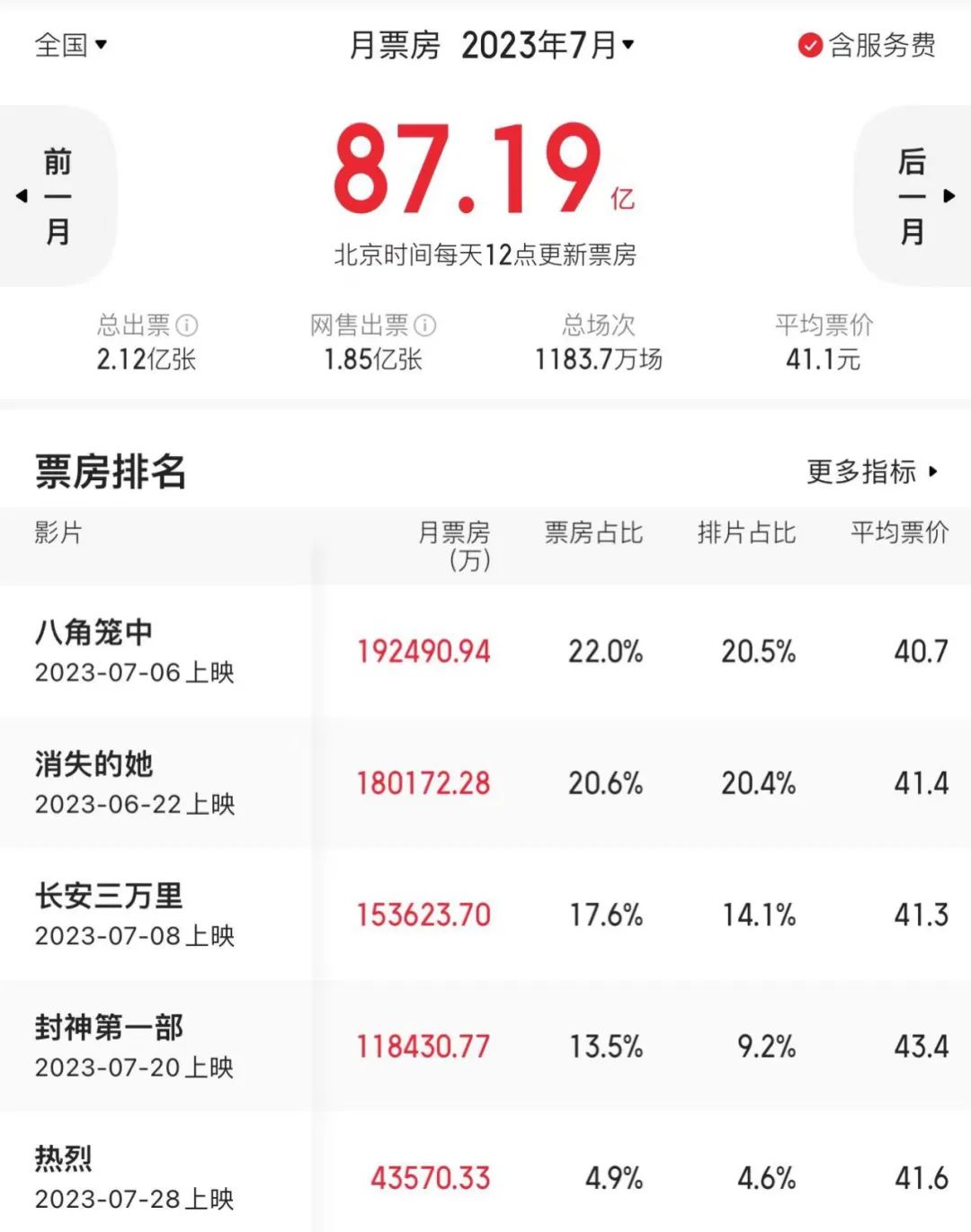 就在不久之前,今年7月电影市场凭借87.19亿元月票房创造了影史新高。