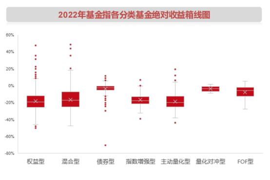 上图是各类基金内部表现的差异,权益型和混合型是两类典型的主动型股票基金,收益最大差距都达到近100个点,就算是中位数与排名前面第25%的基金,收益也相差了8-10个点。