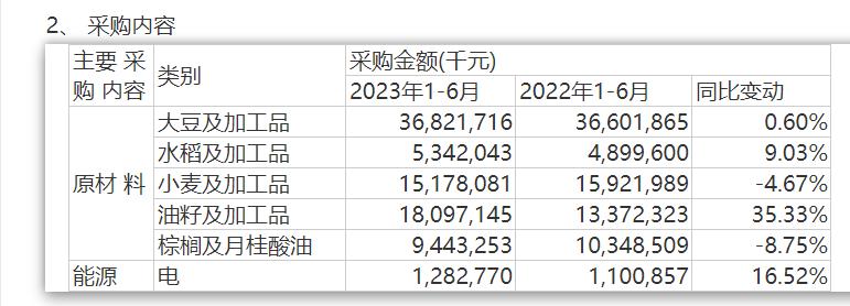 财报显示,2023年上半年,金龙鱼从丰益国际及其控股子公司、ADM及其控股子公司合计采购了53.02亿元大豆及加工品,而2022年整年于上述两家关联公司的采购量也只有44.36亿元。