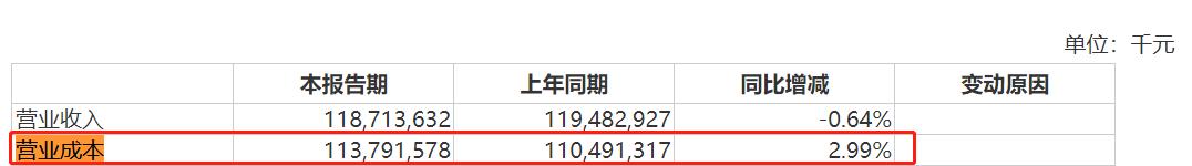 财报显示,2023年上半年,企业的营业成本为1137.92亿元,同比增长2.99%。
