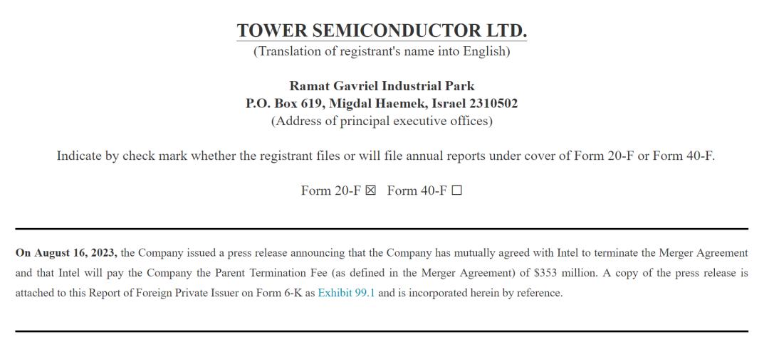 8月16日下午,以色列芯片商高塔半导体( Tower Semiconductor )发布公告称,由于无法及时获得合并协议所要求的监管批准, 英特尔 已与其达成一致,终止此前披露的收购协议。