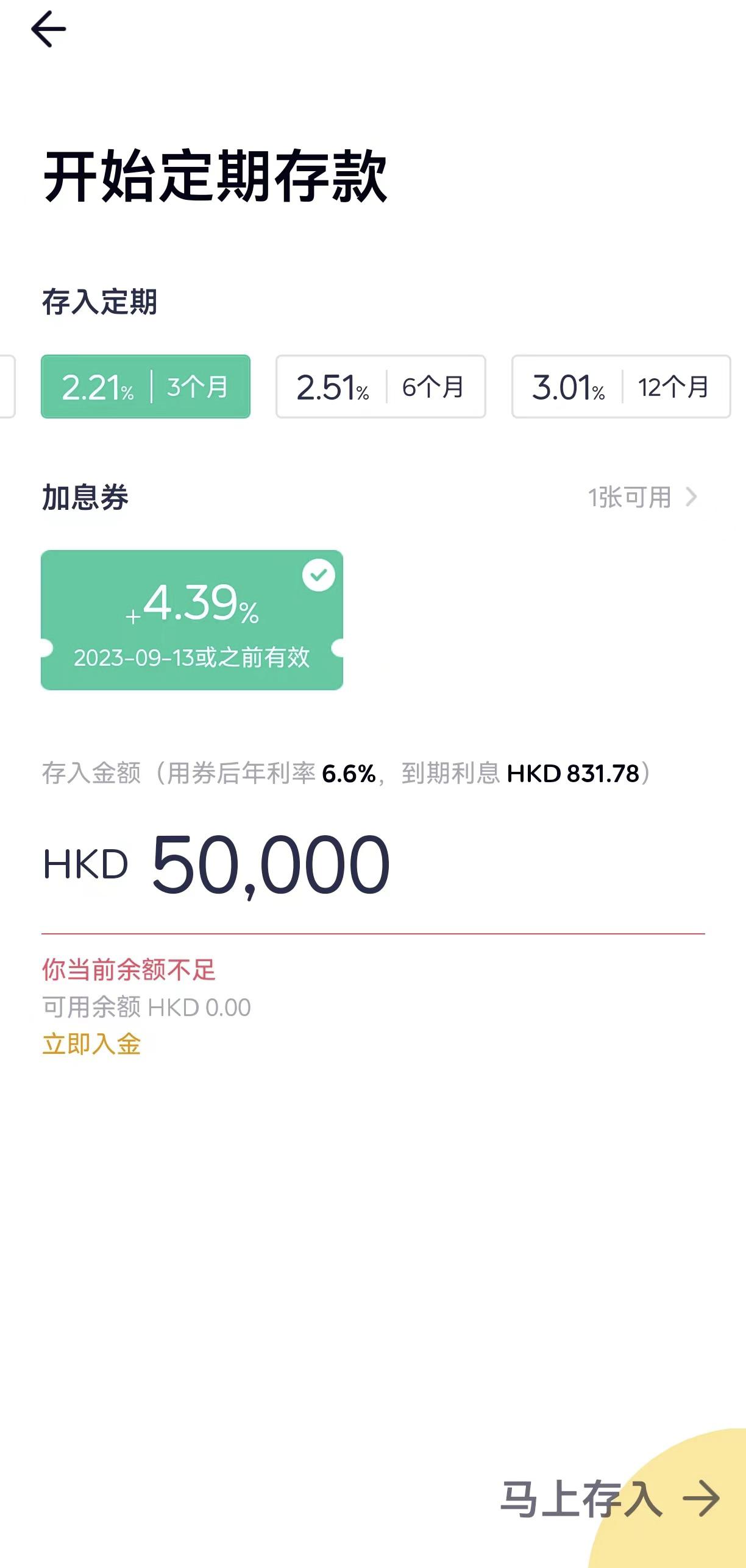 由于基本利率的调高,香港大部分银行港元及美元定期存款最高年化利率均可达4%以上。同时,不乏部分银行以7%甚至9%的短期年化利率吸引客户。