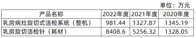 在西山科技估值一路高涨的时候,其2022年营收结构却出现了微妙的变化。乳房病灶旋切式活检系统整机销售不及预期。