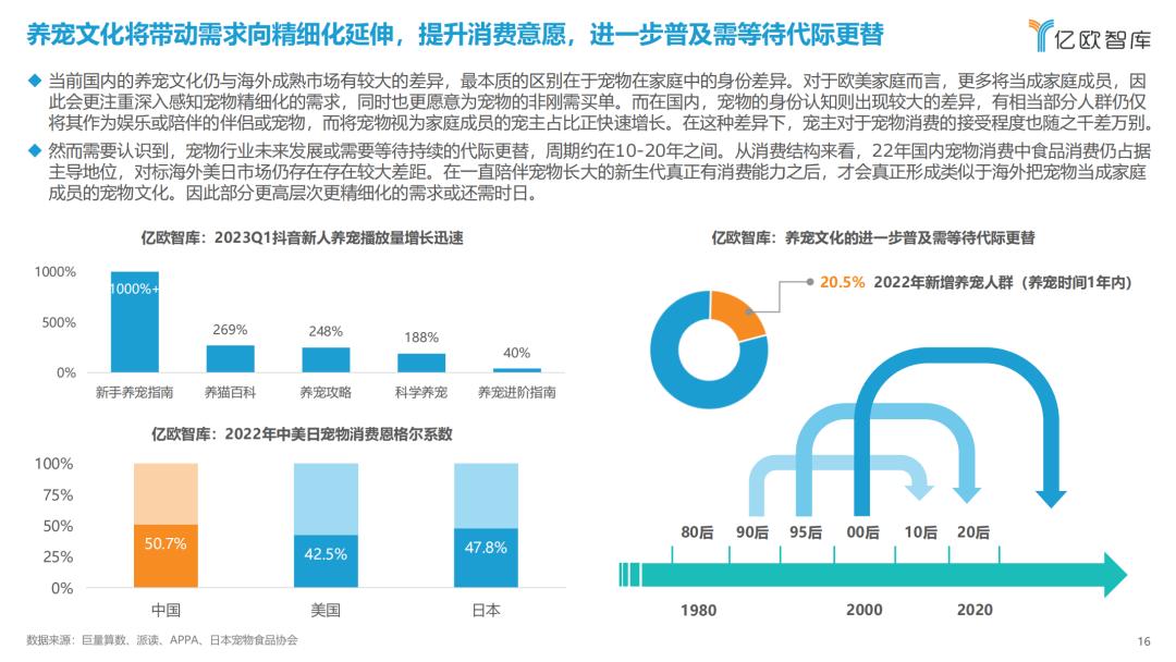 养宠文化将带动需求向精细化延伸,提升消费意愿,进一步普及需等待代际更替