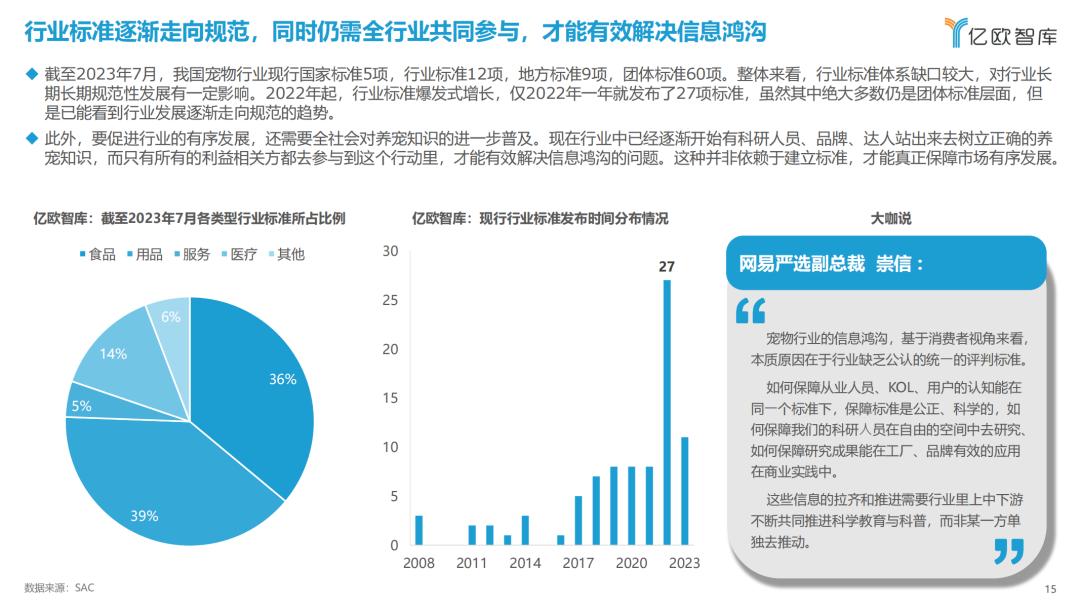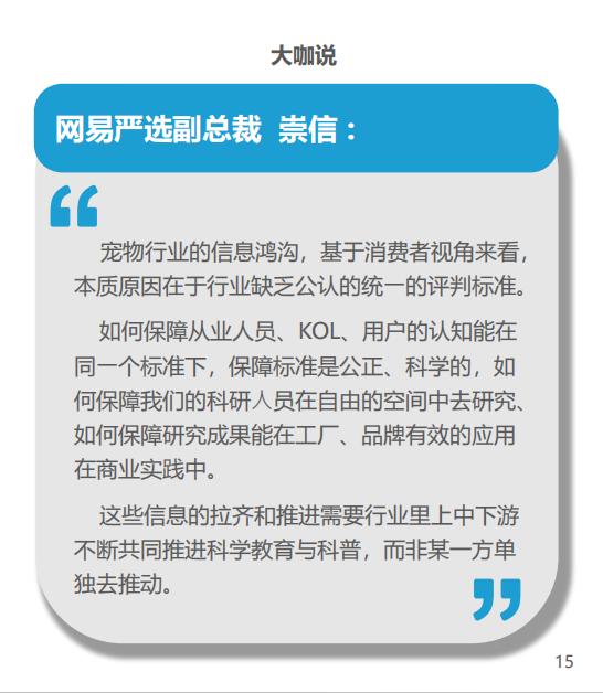 此外,要促进行业的有序发展,还需要全社会对养宠知识的进一步普及。现在行业中已经逐渐开始有科研人员、品牌、达人站出来去树立正确的养宠知识,而只有所有的利益相关方都去参与到这个行动里,才能有效解决信息鸿沟的问题。这种并非依赖于建立标准,才能真正保障市场有序发展。
