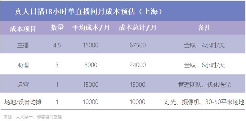 以下是其在上海用真人直播18小时和用数字人直播18小时的每月成本对比(此成本预估根据具体人员安排和所在地市,有些许差异)。