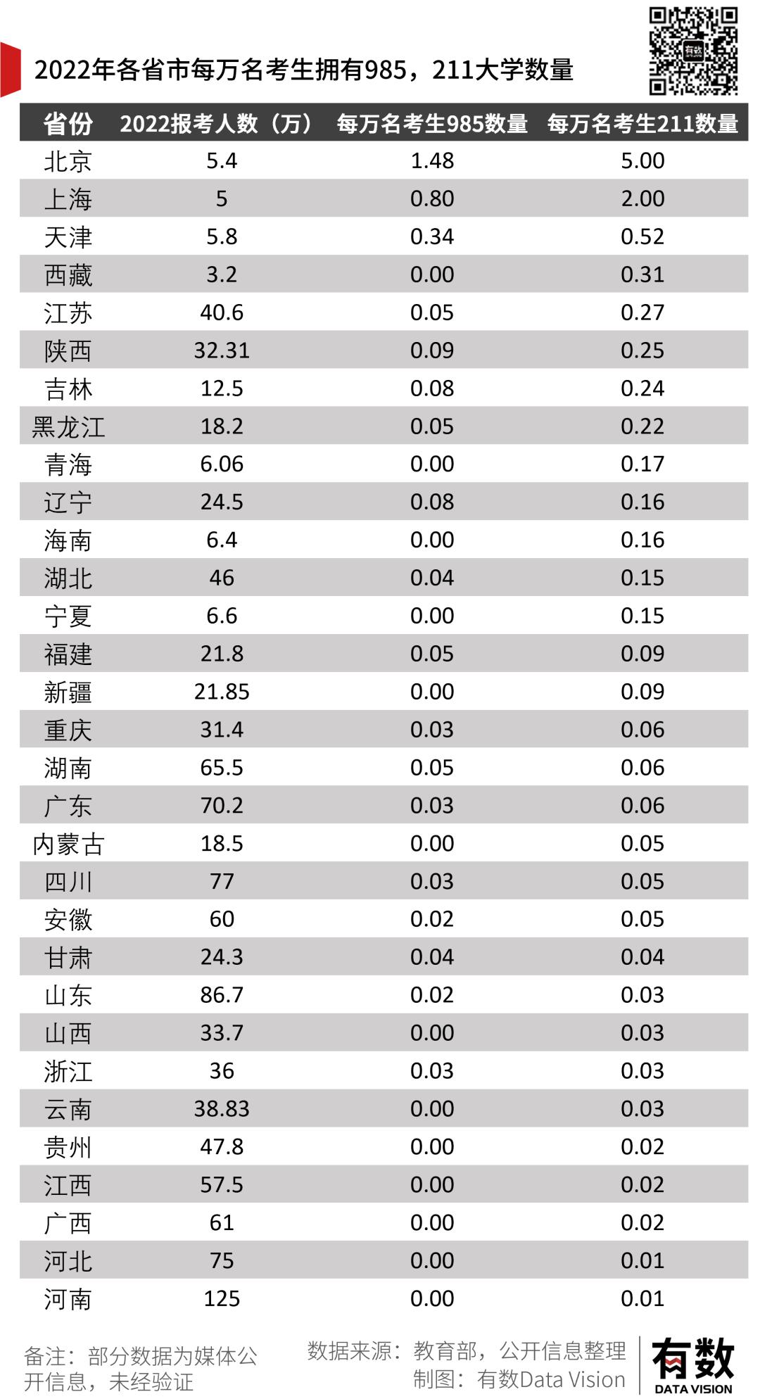 唯一让人感到意外的可能是浙江,因为浙江的985/211院校只有一所:浙江大学。
