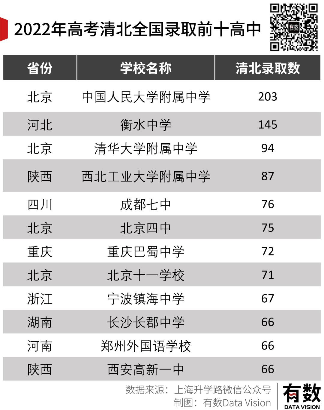 具体到全中国最顶级的高中,由于不再允许公布清北录取人数,所以我们采用了媒体自行统计的数据。
