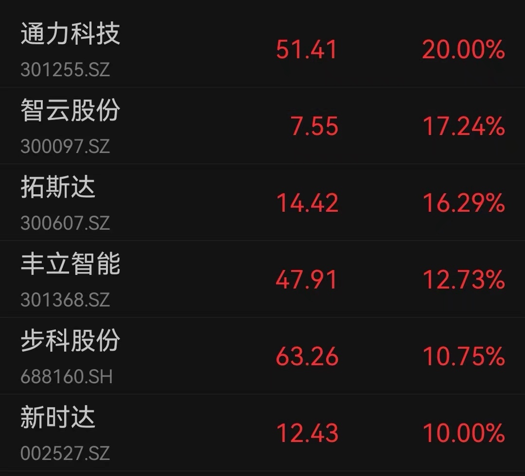 机器人概念股快速走高,新时达涨停,通力科技涨超7%,丰立智能、中大力德、昊志机电等跟涨。