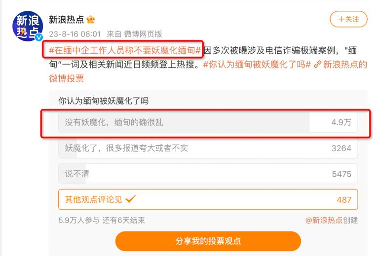 微博上关于“缅甸是否被妖魔化了”的投票