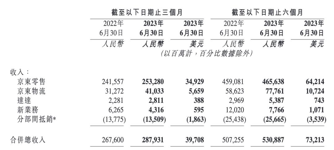 二季度,京东总收入2879亿元,其中,京东零售收入为2533亿元,京东物流收入为410亿元,这两项业务是京东本季度营收增长的主要来源。