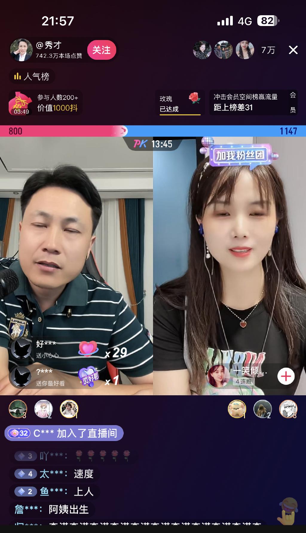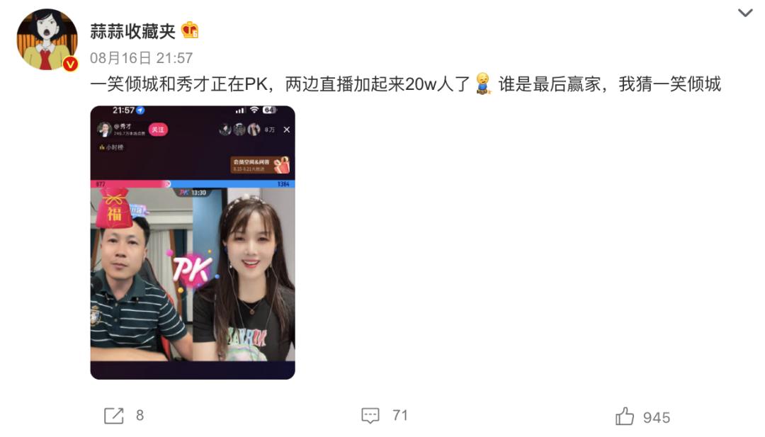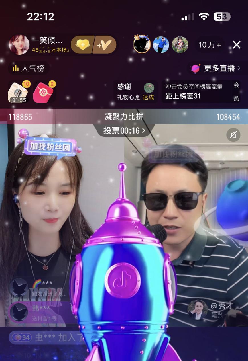 大叔还以为说的是女足世界杯决赛呢,一问才知道,原来这场pk是在抖音直播。