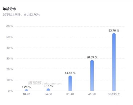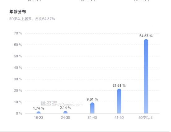 来自抖音数据第三方提供商——达多多的数据显示,在@一笑倾城1800万的粉丝中,80%是男性,53%是50岁以上,94%在二三四五六线城市,简而言之,可能就是你在老家的、领着退休金的父亲。