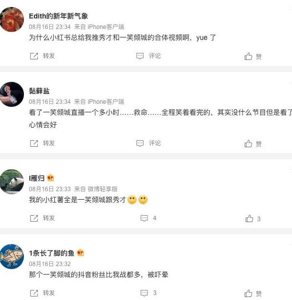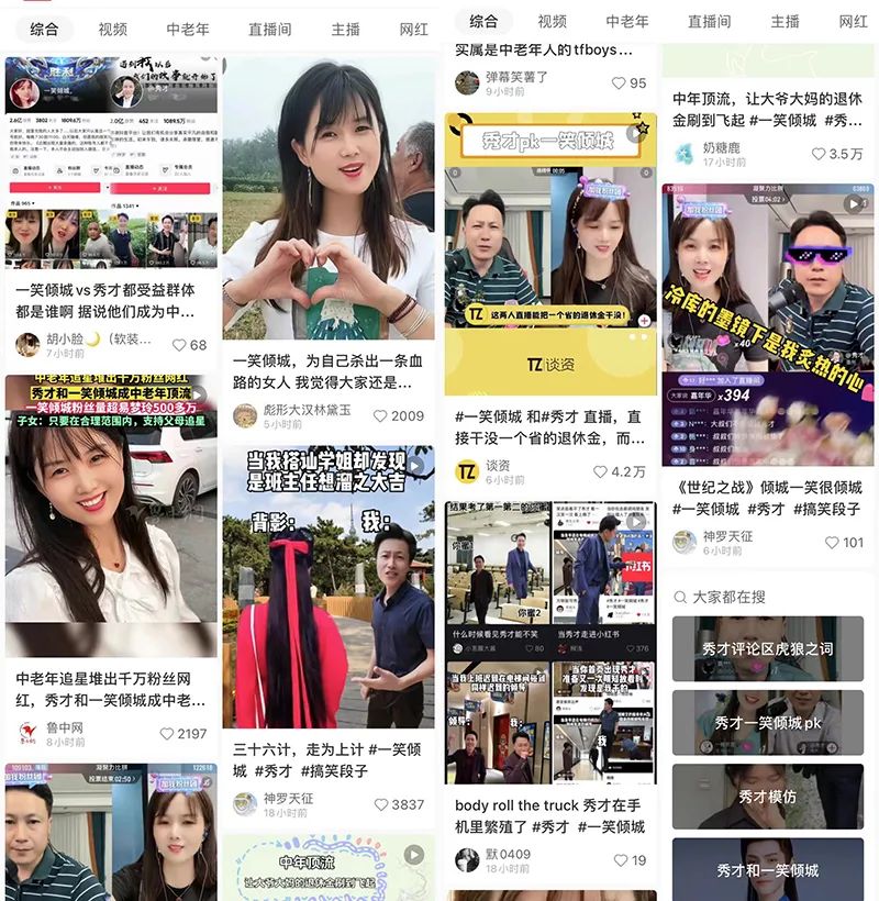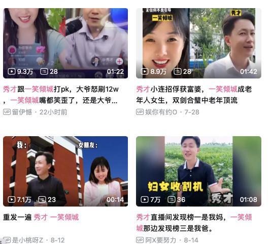 b站、小红书和微博上,都是一笑倾城和秀才的段子。