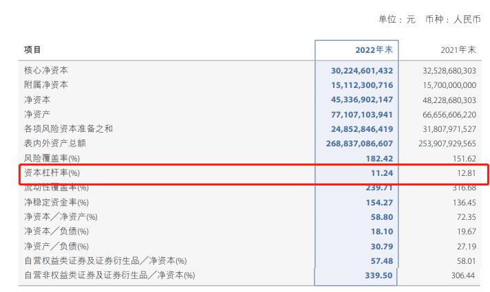 根据证监会发布的《证券公司风险控制指标管理办法》及配套风控指标的计算标准要求,证券公司资本杠杆率不得低于8%,预警标准为9.6%。