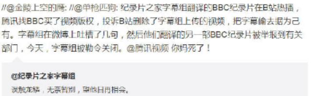 举例来说,曾有网友称,某视频平台盗用了纪录片之家为BBC的《中国新年》做的翻译字幕。