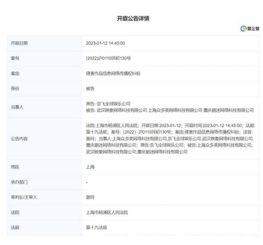国外的出品方也开始积极维权。2022年,奈飞全球娱乐公司、迪士尼企业公司等多家海外影视公司就集体起诉了人人视频关联主体公司上海众多美网络科技有限公司。