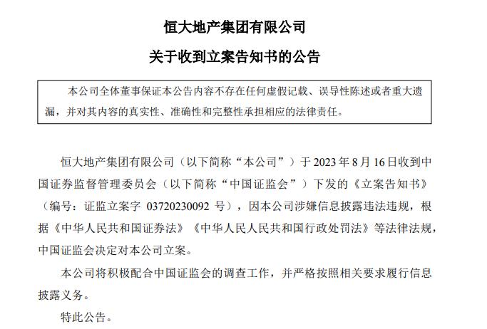 查此前16日,恒大地产因涉嫌信息披露违法违规,被中国证监会立案调查。