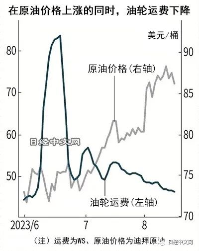 日本海运经纪公司Atlas的社长滨崎作司表示,“中国因原油价格上涨而正在减少进口”。自7月以来,原油价格由于石油输出国组织(OPEC)+等产油国减产而出现上涨。