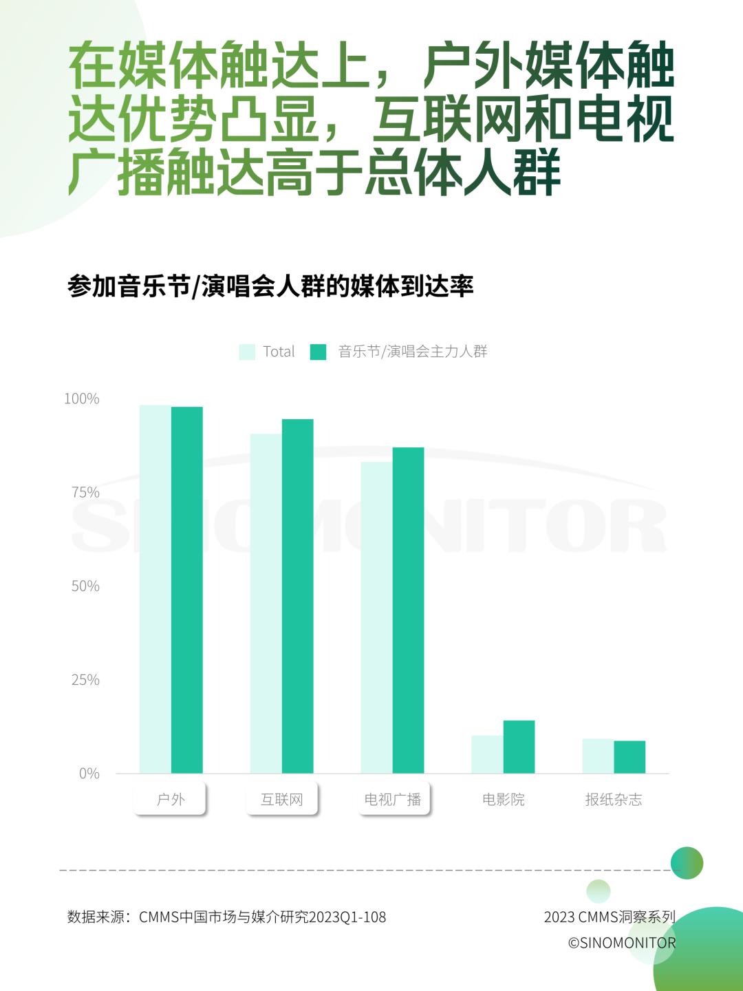 互联网和广播媒体在音乐节观众中的影响力高于整体受众,因此应该成为重点投放的渠道。户外媒体的显著优势在触达上起到辅助作用,不同类型的户外广告投放会有一定差异,需对目标受众进行多场景触达,所以对于音乐节受众选择户外广告投放最精准,在正确的时间,正确的地点给受众看到正确的内容,这是营销最好的结果。