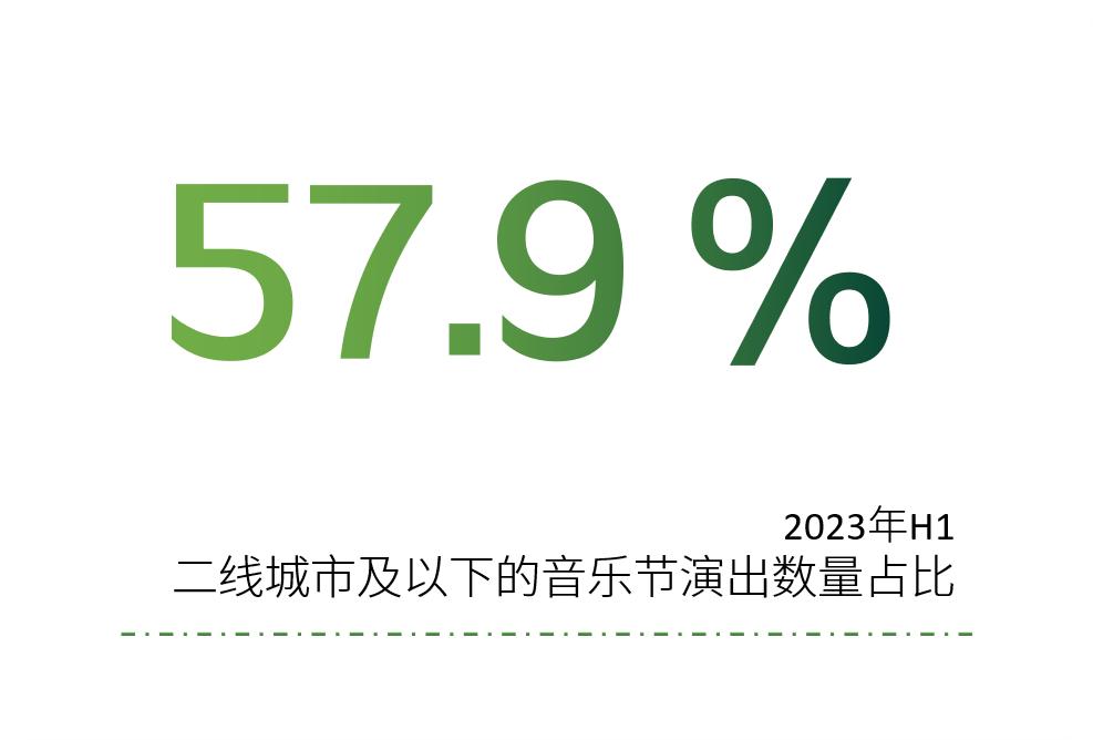 据腾讯音乐研究院《2022华语数字音乐年度白皮书》显示,2023年上半年,二线城市及以下的音乐节演出数量占比已经达到57.9%,对比疫情前2019年上半年,该数据增长了19.9%。