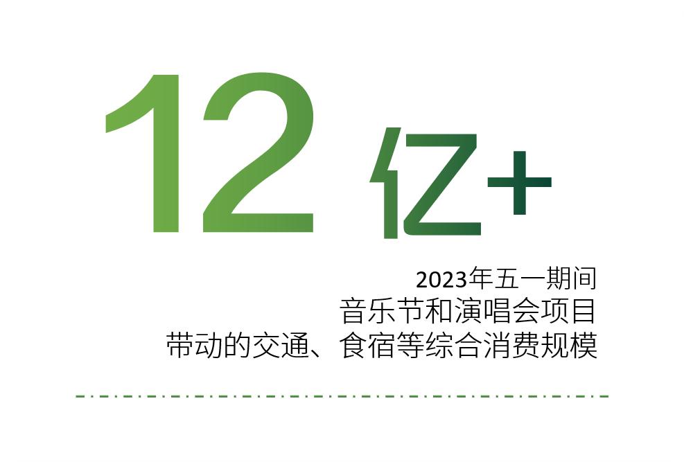 中国演出行业协会在2023年一季报中指出,根据对部分大型演唱会、音乐节的票务销售趋势调研了解,跨城购票观演的消费者比例较去年大幅攀升,平均跨城观演率超过购票总人数的50%,显示出该类演出项目对交通、住宿、餐饮等周边消费强大的带动能力。五一期间,仅音乐节和演唱会项目带动演出票房之外的交通、食宿等综合消费规模超过12亿元。