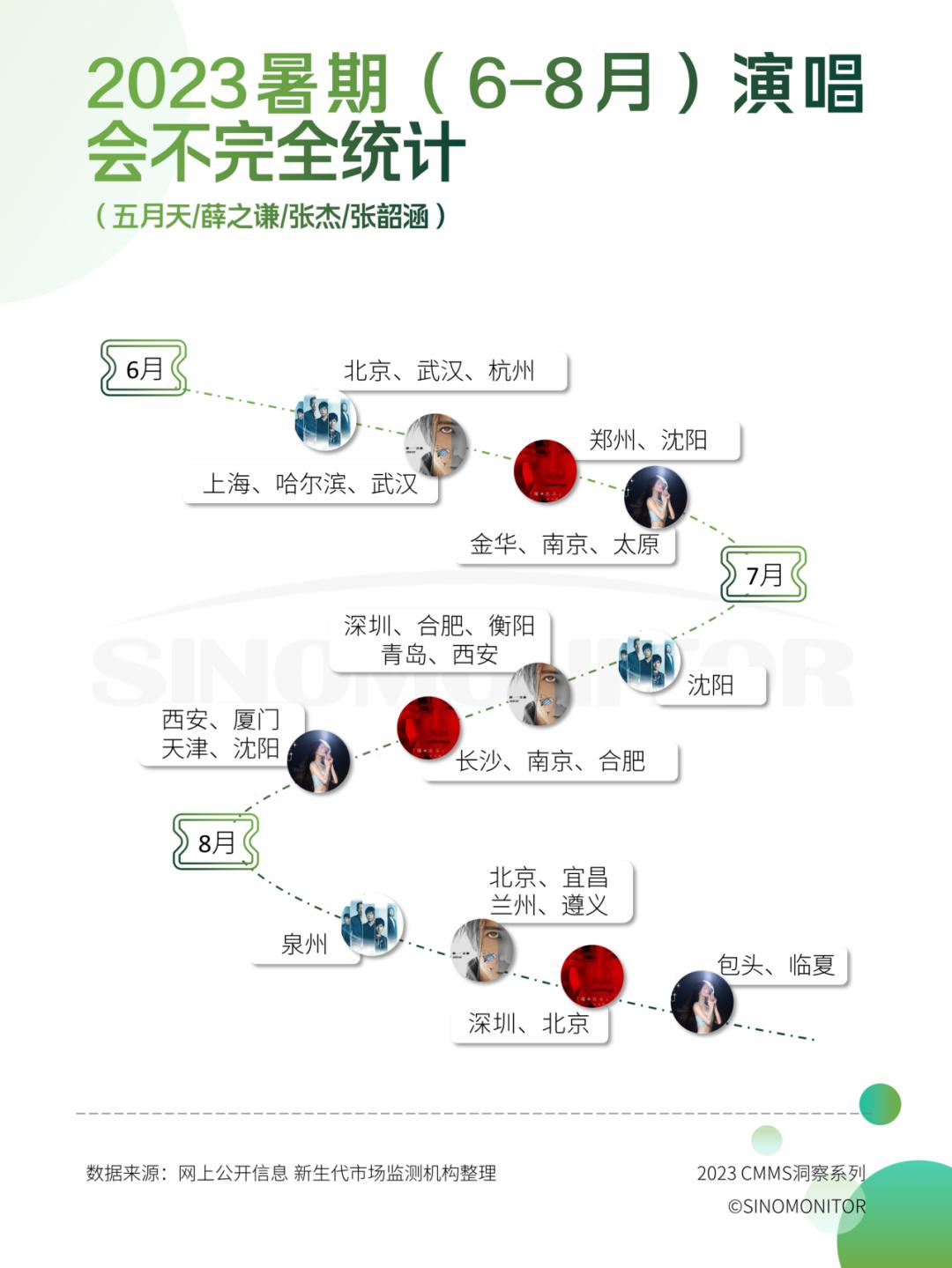 通过CMMS数据得出,新一线、二线及三线城市大部分是音乐会的开设场地,相较于一线城市,这些城市举办音乐节的成本更低、政策支持力度更大。