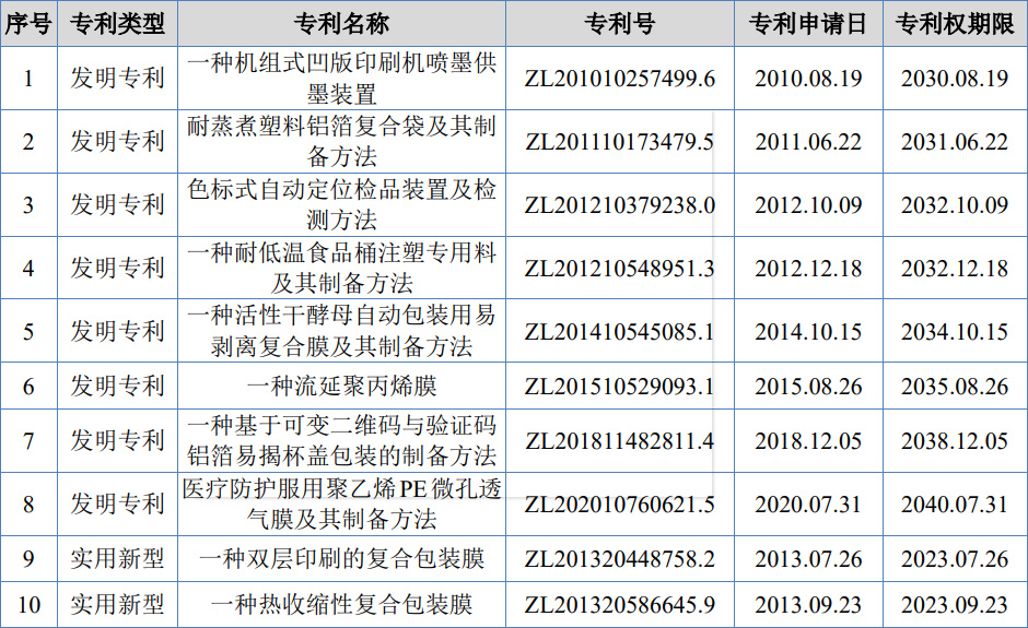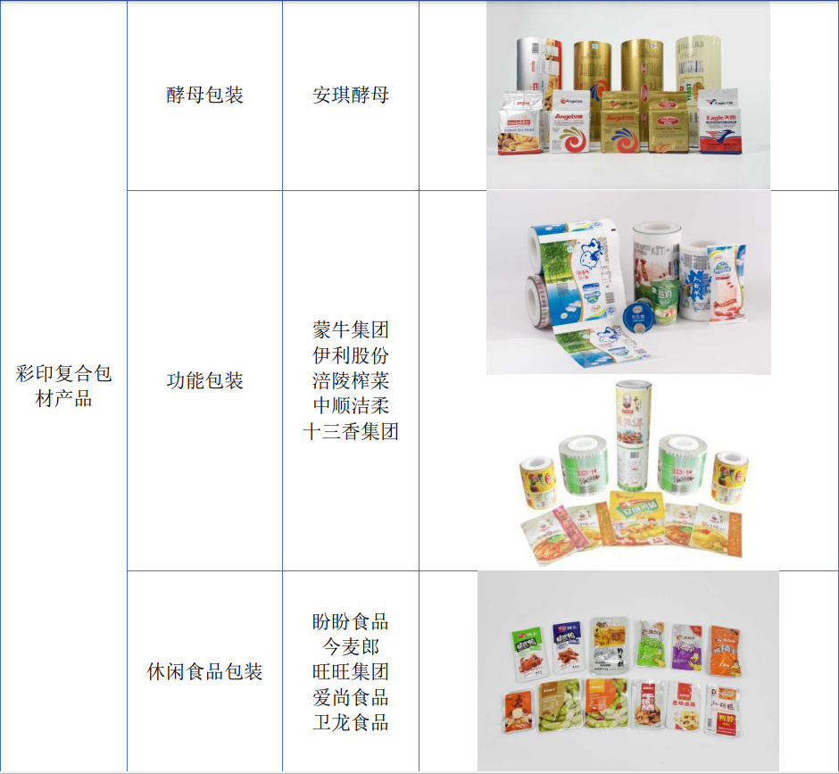 公司从事彩印复合包材产品多年,凭借先进的生产技术和设备以及优秀的产品质量和服务,积累了丰富的客户资源。目前,公司已经和安琪酵母、盼盼食品、旺旺集团、涪陵榨菜、蒙牛集团、伊利股份、卫龙食品、十三香集团、稳健医疗等知名企业建立了长期稳定的合作关系。值得注意的是,目前公司已成为湖北省支柱产业细分领域隐形冠军示范企业;国家级专精特新“小巨人”企业。