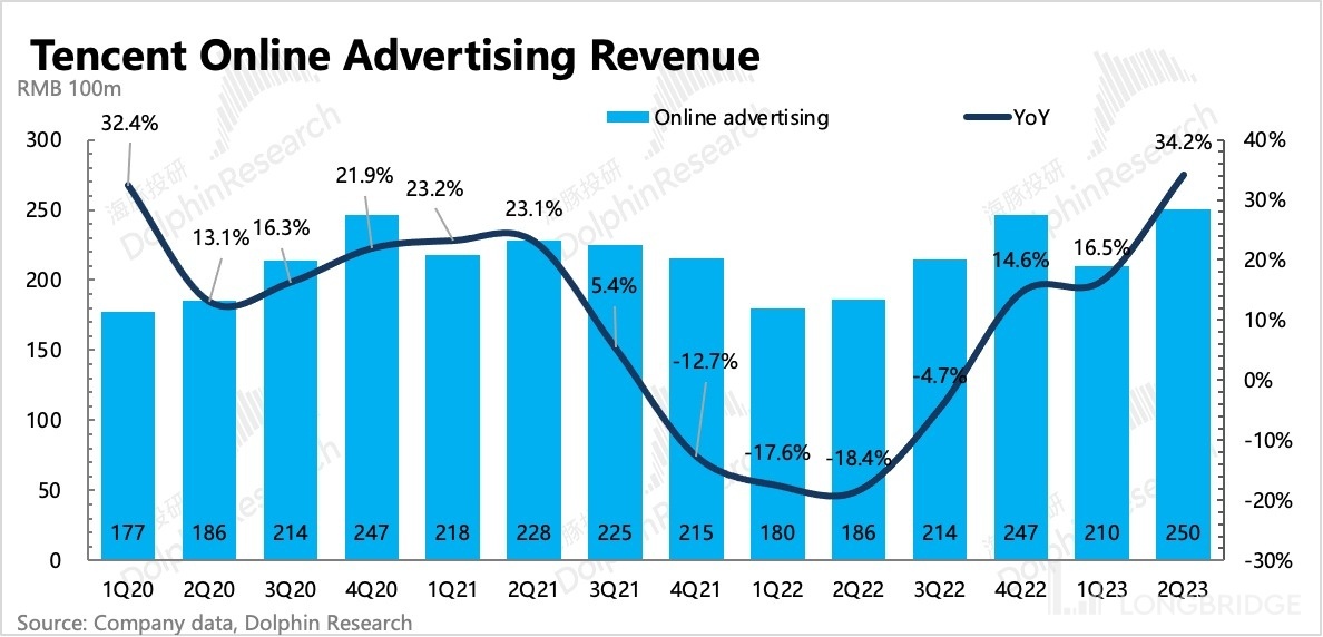 二季度,腾讯广告业务收入同比增长34%至250亿元。虽然去年同期基数较低,但从增速上看,腾讯广告也跑赢了大盘。财报将增长归功于机器学习能力的进化以及视频号的商业化。
