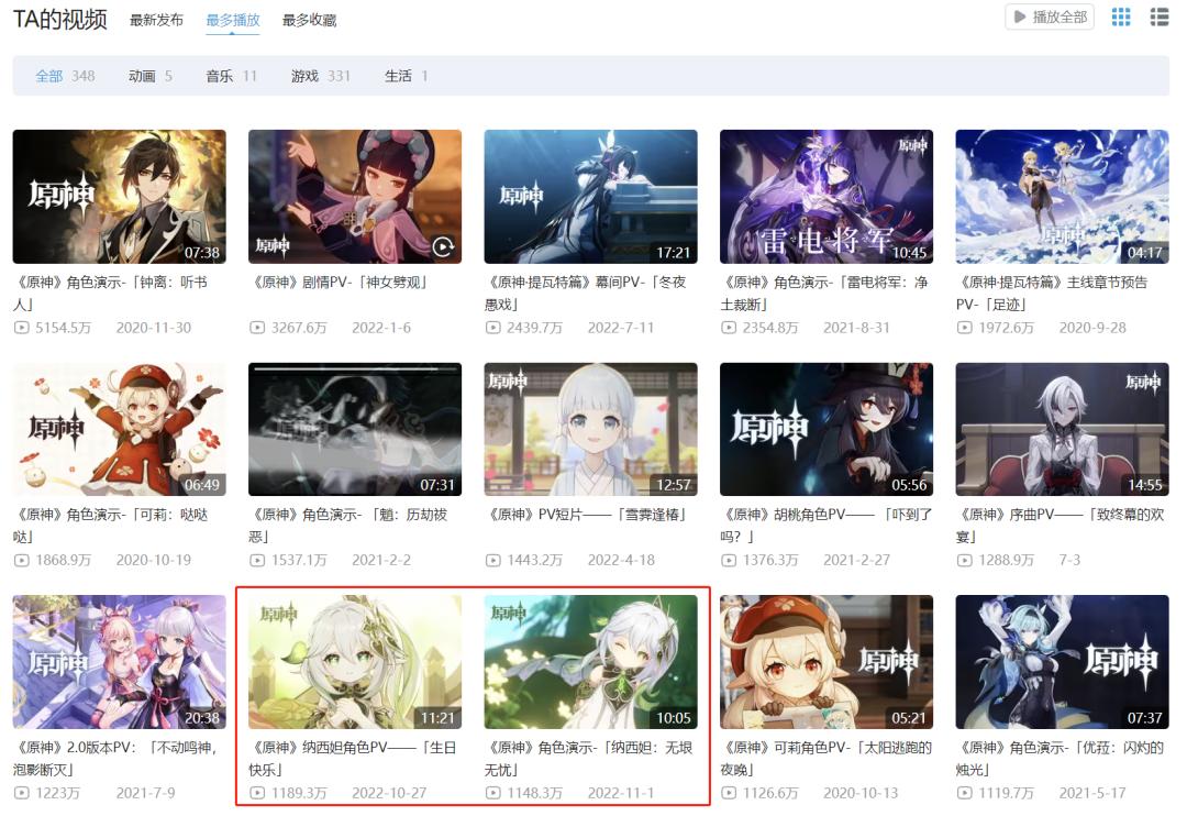 纳西妲的角色PV「生日快乐」,因其补全了角色的悲惨过去,更是大大激发了玩家的保护欲,成为了须弥版本相关内容中播放量最高的视频。