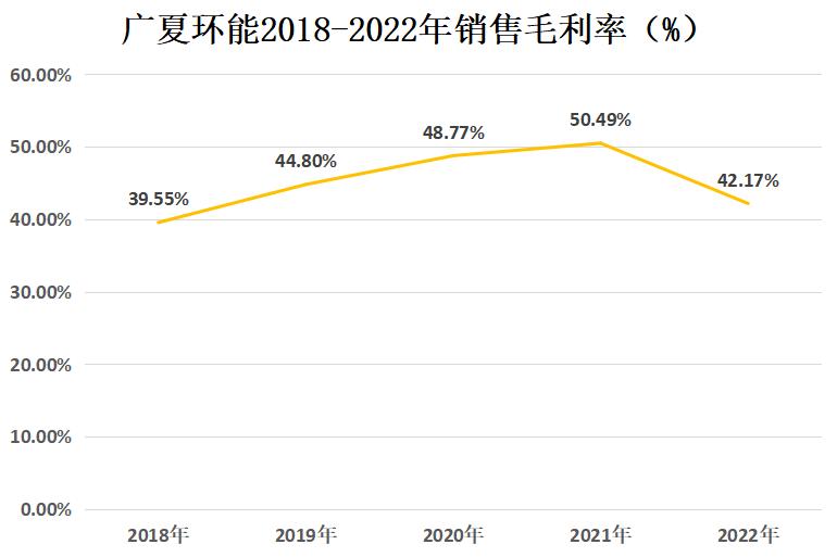 从整体毛利率来看,2018-2022年广夏环能毛利率由39.55%波动增长到42.17%。