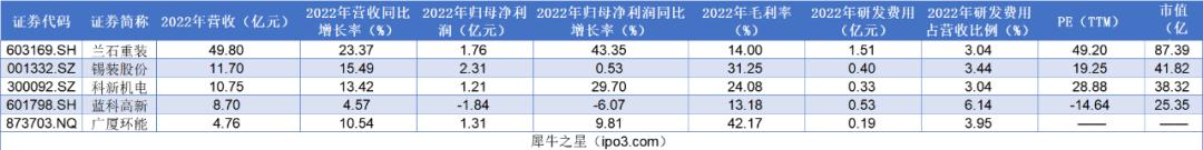 同行业上市公司方面,广厦环能可比公司包括锡装股份(001332)、蓝科高新(601798)、兰石重装(603169)、科新机电(300092)。