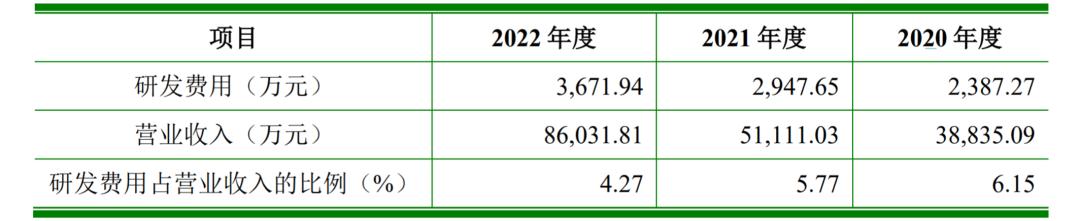 报告期内(2020年至2022年),公司营业收入分别为3.88亿元、5.11亿元和8.60亿元,扣除非经常性损益前后孰低的归属于母公司股东的净利润分别为4728.37万元、7229.47万元和1.26亿元,业绩规模呈增长趋势。