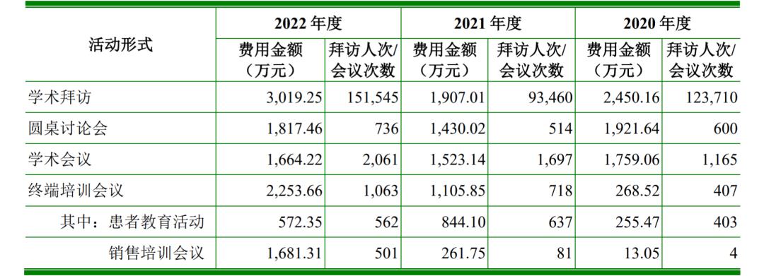 值得一提的是,在2022年,疫情防控严格,该公司仍举办了736次圆桌讨论会、2061次学术会议及1063次终端培训会议,比2021年开会的频次增加不少。