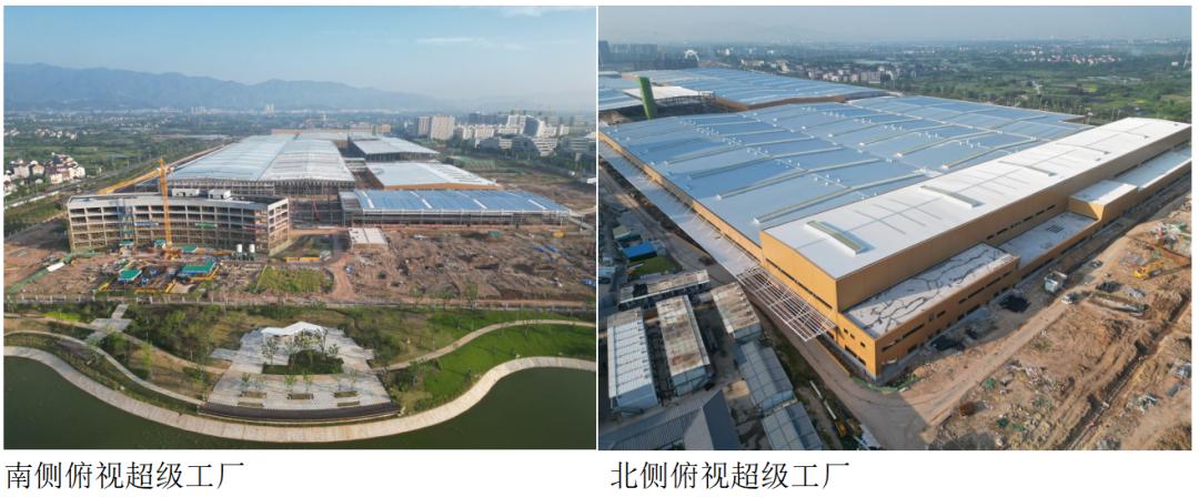 结合王华提供的近期航拍图可以看到,除了研发中心屋面约做了一半、涂装车间部分屋面暂没有完成,其他厂房屋面基本已经完工。