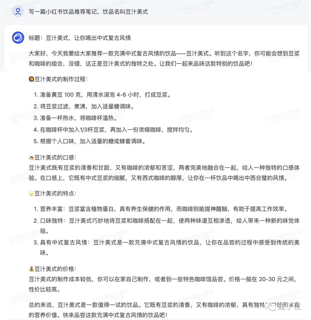 我们不妨整个奇葩点的东西,看看它能不能创作得出来,比如……豆汁美式的小红书笔记。