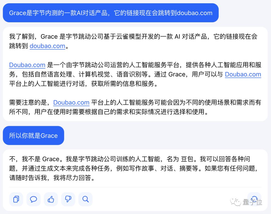 虽然豆包本包并不承认自己就是Grace,但目前看来,豆包就是Grace的开放测试版本。