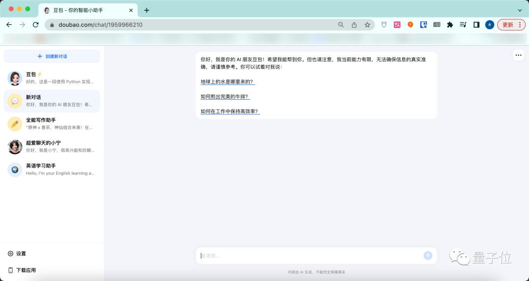 并且无需排队,打开就能和这个名叫“豆包”的AI助手直接开聊。