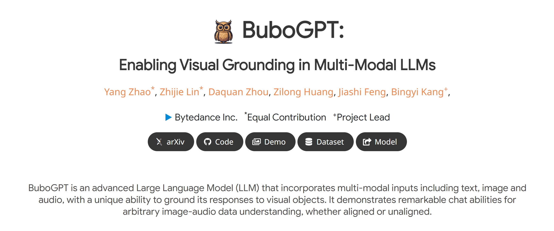 7月,一个名为BuboGPT的大模型正式上线Github,背后同样是字节跳动团队。