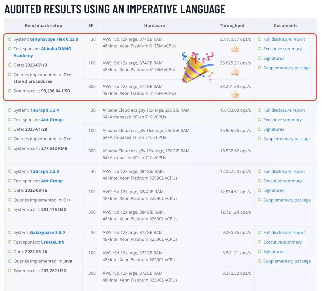 这次,GraphScope 登顶并打破榜单历史纪录的基准测评是 LDBC SNB Interactive ,也是业界最受认可的图数据库基准评测。