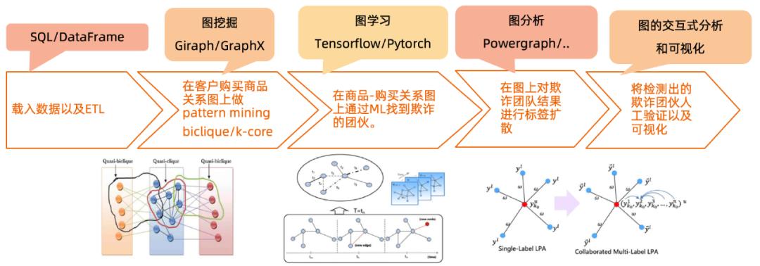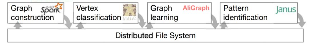 在处理现实业务时,一个复杂的工作流可能涉及多种不同类型的图计算任务,比如多模式的图计算,以及需要跨越多个系统进行协同的情况。举例来说,考虑一个包含交易图和欺诈检测的工作流,这可能需要在不同的系统中执行不同的图计算任务,这不仅会引入大量的 IO 开销,还会增加系统运维的复杂性。