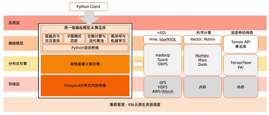 为了实现这一概念,他们进行了大量的研究和开发工作。例如,开展了自研的子项目 vineyard,这个项目解决了跨不同引擎之间数据交互与共享的挑战。值得一提的是,vineyard 项目开源后被捐赠给了云原生大数据社区,进入了 CNCF Sandbox。